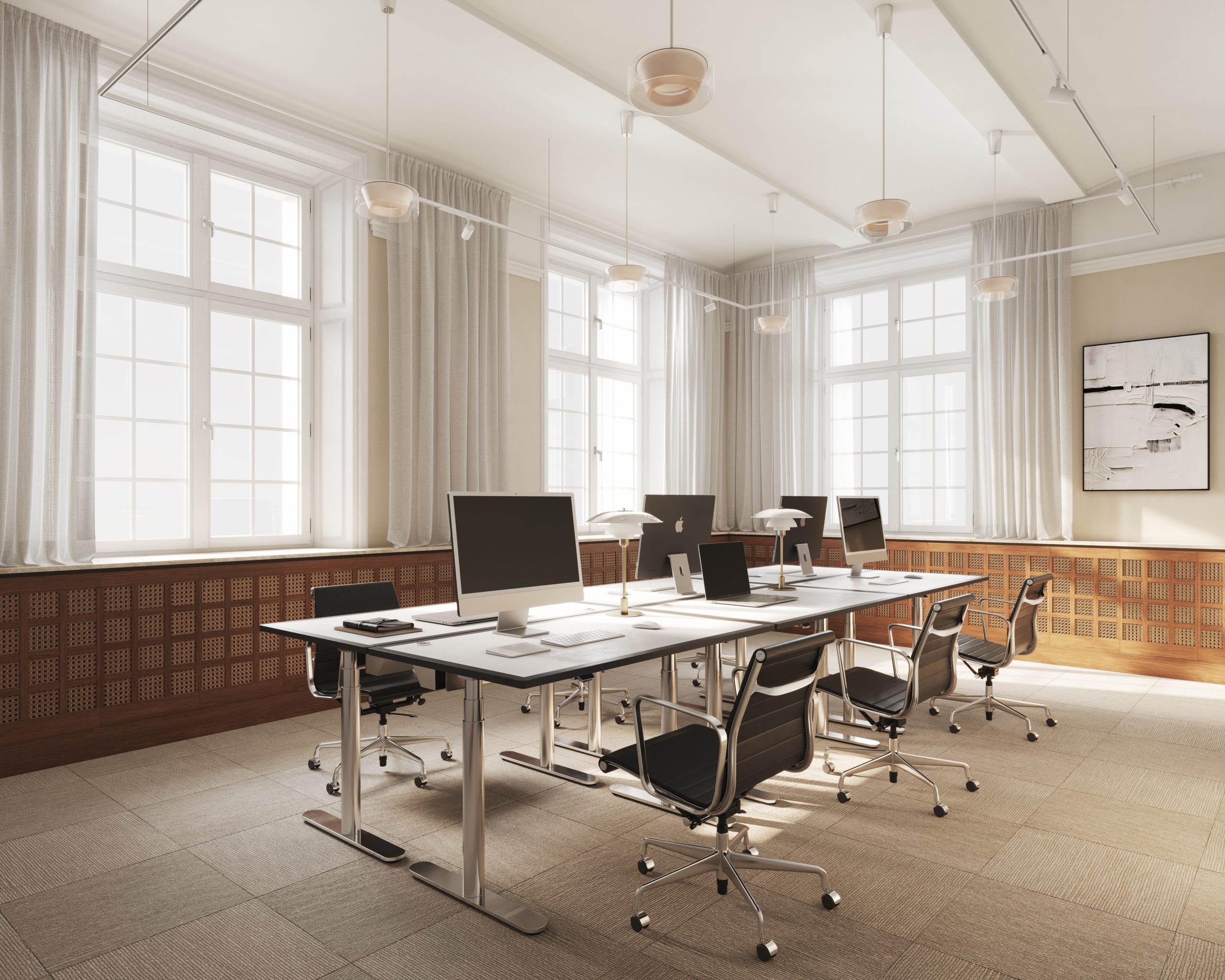 Varje rum och gemensam yta är inredd med stilrena möbler, konstverk och belysning som inte bara är estetiskt tilltalande utan även funktionella. Vår inredning är noggrant utvald för att erbjuda komfort och en sofistikerad atmosfär, från lyxiga loungemöbler till skräddarsydda arbetsstationer.